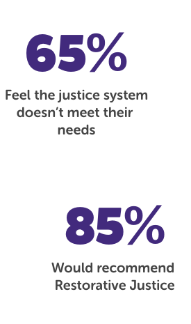 Only 35% of people feel that the criminal justice system meets their needs – Restorative Justice allows YOU to communicate YOUR views and seek answers to help you recover from crime.